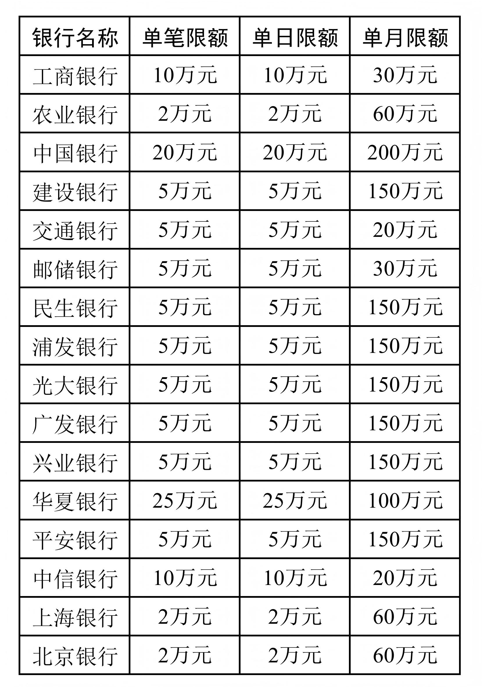 为保障资金交易安全,根据合作支付方的最新通知,自2025年8月1日起,银行充值限额调整如下: